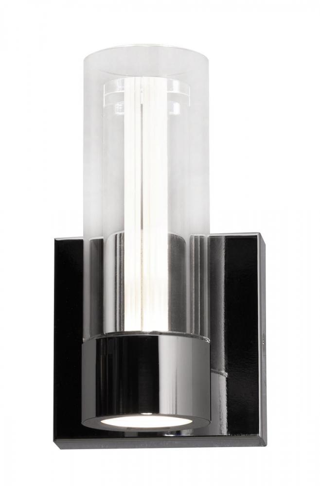 A laser etched inner diffuser with a clear glass outer diffuser, highlights this LED sconce. Offers up and down illumination. Full metal back-pan.