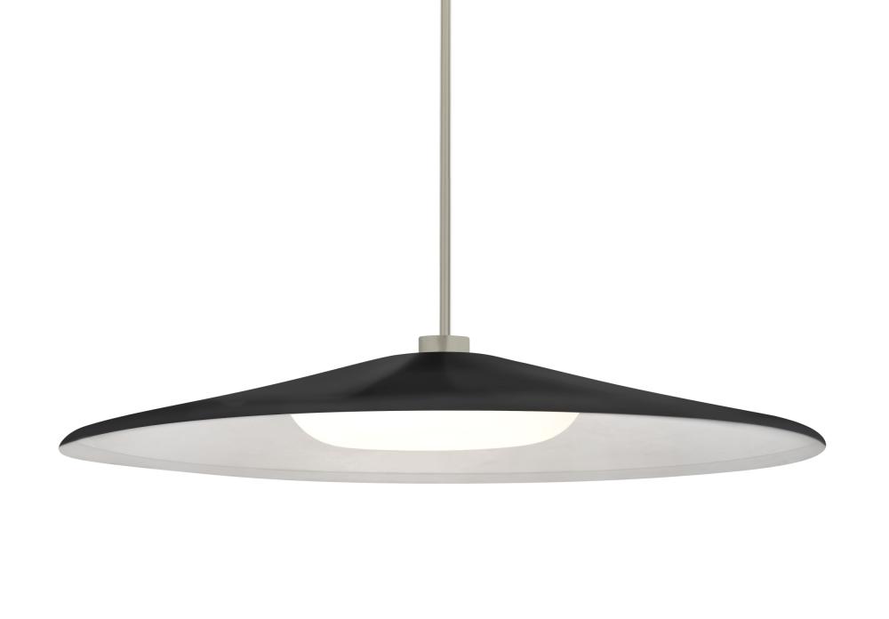 Our Swan employs a contemporary large-scale spun aluminum shade along with a blown glass toroidal diffuser, for a seductive inner glow combined with effective downlighting. The upper portion of the shade is painted in various color options, resulting in a design ideal for a diverse group of architectural spaces. The stem pendant fixture is equipped with an adjustable telescoping section, 4 connectable stem sections (3", 6", 12", and 18") and low Profile flat monopoint canopy. These stylish and functional luminaries are offered in a beautiful Satin Nickel finish.