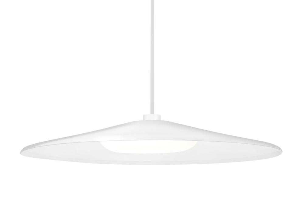Our Swan employs a contemporary large-scale spun aluminum shade along with a blown glass toroidal diffuser, for a seductive inner glow combined with effective downlighting. The upper portion of the shade is painted in various color options, resulting in a design ideal for a diverse group of architectural spaces. The stem pendant fixture is equipped with an adjustable telescoping section, 4 connectable stem sections (3", 6", 12", and 18") and low Profile flat monopoint canopy. These stylish and functional luminaries are offered in a beautiful White finish.
