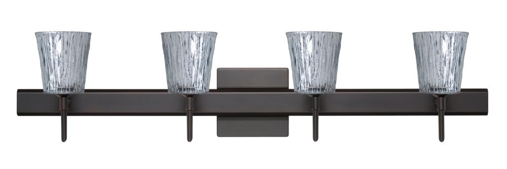 Besa, Nico 4 Vanity with Square Canopy, Stone Silver Foil, Bronze Finish, 4x5W LED
