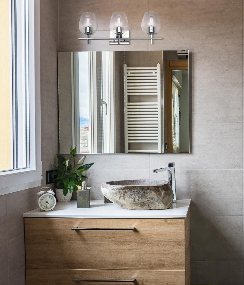 Elegant Chrome Finish with Clear Glass: The CAIN 3-Light Vanity features an elegant chrome finish with clear glass, adding a touch of sophistication to your bathroom.