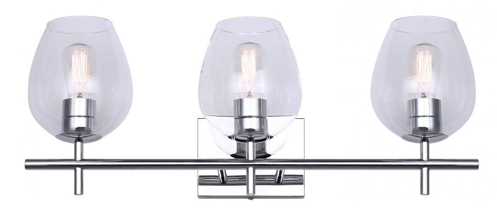Cain 25 in. 3 Light Chrome Vanity with Clear Glass Shade