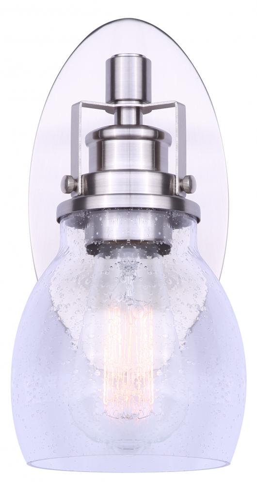 The Carson 1 Light Vanity, Nickel Finish, with its timeless Brushed Nickel finish and User Replaceable Bulb, epitomizes classic elegance. Perfect for those who appreciate lasting beauty.