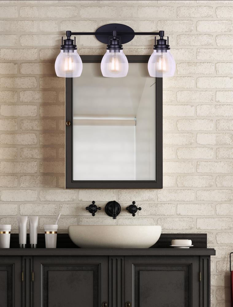 The Carson 3 Light Vanity, Black Finish captures the spirit of luxury opulence. A stunning piece that combines Metal and User Replaceable Bulb to create an unforgettable ambiance.