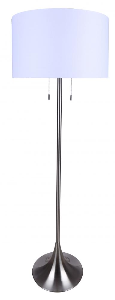 The Clara 2-Light Floor Lamp offers a perfect balance of style and functionality for any room in your home. With a brushed nickel finish and a white fabric shade, this lamp provides a clean, modern aesthetic that complements a variety of decor styles. The dual light design, operated by convenient on-off pull chains, allows you to customize the lighting level for any occasion. Standing at 61 inches tall with a 19-inch wide base, this lamp is ideal for living rooms, bedrooms, or home offices. Durable and easy to assemble, the Clara floor lamp is a versatile lighting solution that adds both elegance and practicality to your space.
