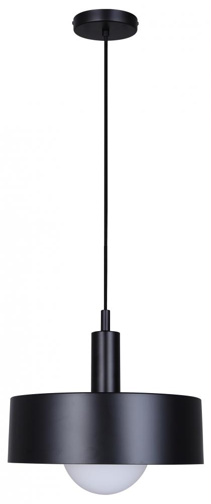 DAYLON 60-Watt 1 Light Matte Black Pendant with Frosted Glass Shade for Living Areas