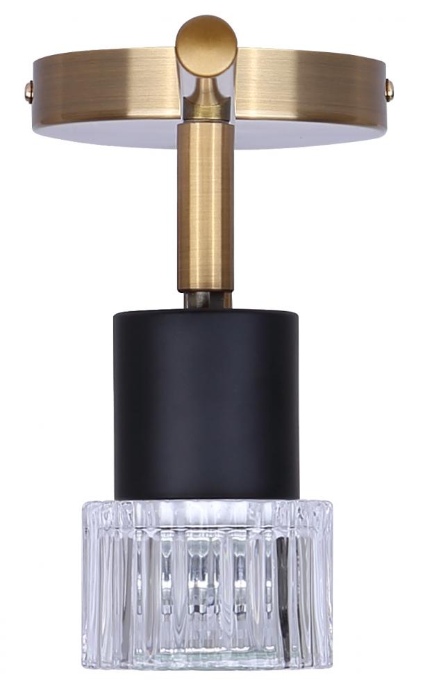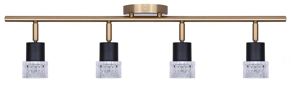 ELSEE 4 Light 29 in. Ceiling/Wall Matte Black and Gold Track Light Kit with Clear Ribbed Glass Shade