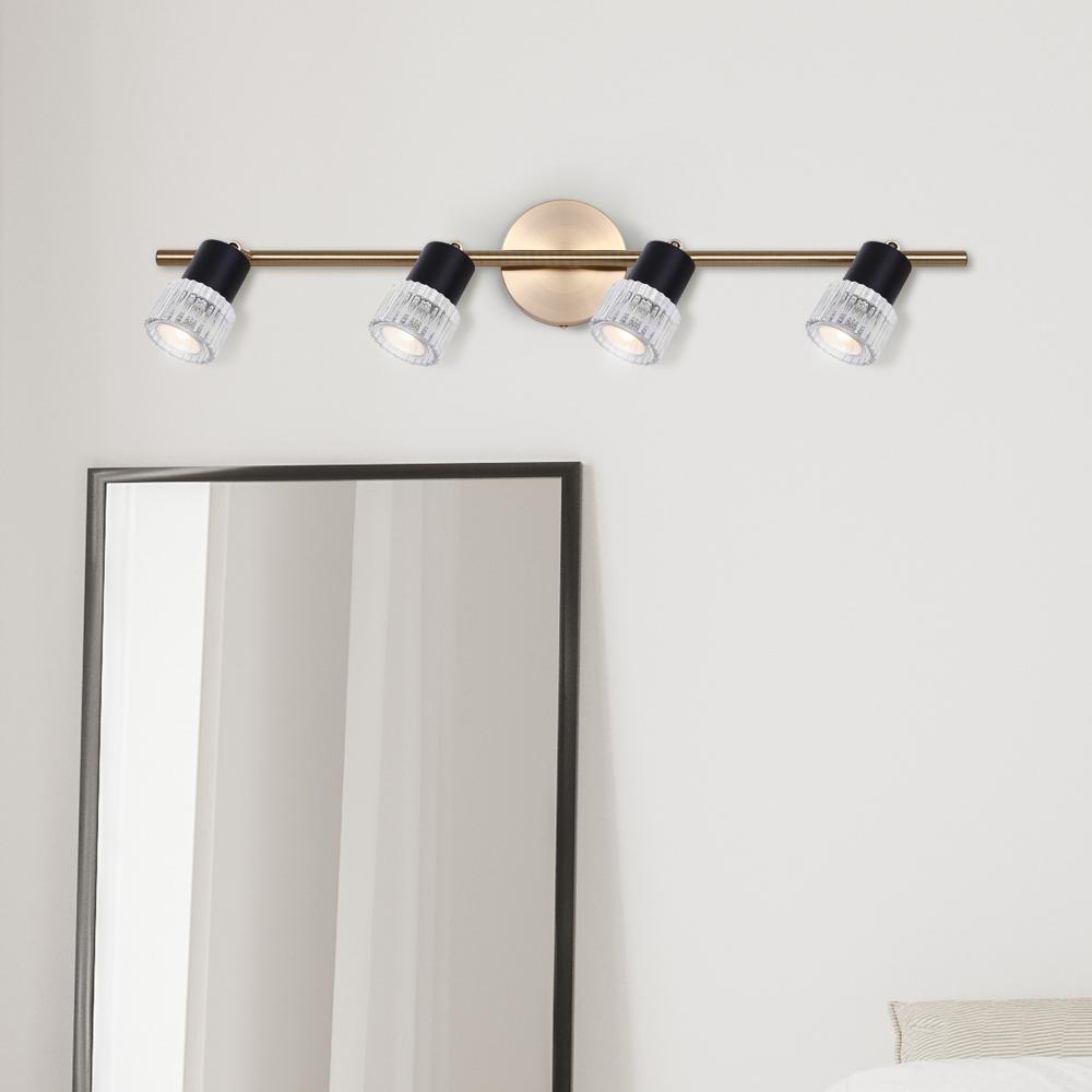 Illuminate your space with the ELSEE 4 Light Track, a sleek and versatile lighting solution for your home or office. Featuring a combination of Gold and Matte Black finishes, this track light exudes modern elegance, adding a contemporary touch to any room. With four adjustable light heads, it allows you to customize the direction of illumination to suit your needs. Compatible with GU10 bulbs up to 50W each (bulbs not included), it offers ample brightness for various tasks and activities. Measuring 29 inches in width, 7.5 inches in height, and 4.75 inches in depth, it provides a balanced aesthetic while delivering practical lighting solutions. The Easy Connect Included feature simplifies installation, allowing you to enjoy your new fixture with ease.