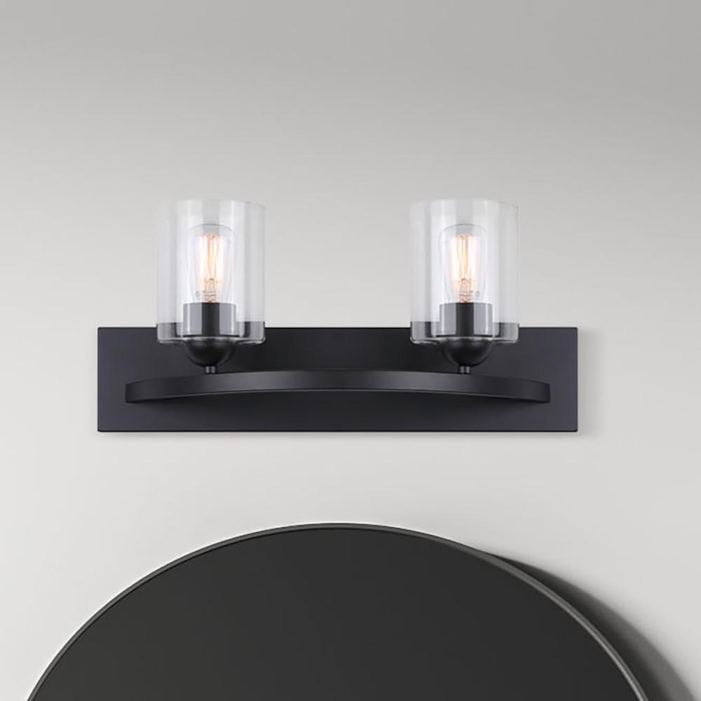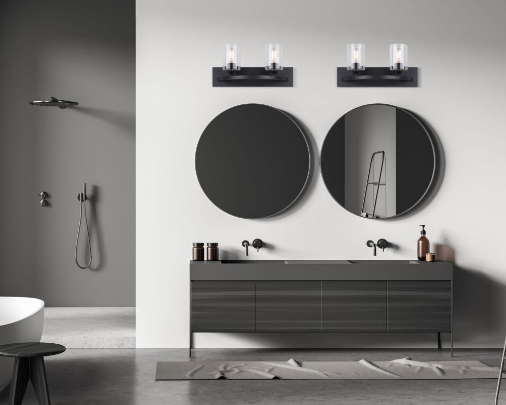 The Hampton 2 Light Vanity, Black Finish captures the spirit of urban sophistication. A stunning piece that combines Matte Black and User Replaceable Bulb to create an unforgettable ambiance.