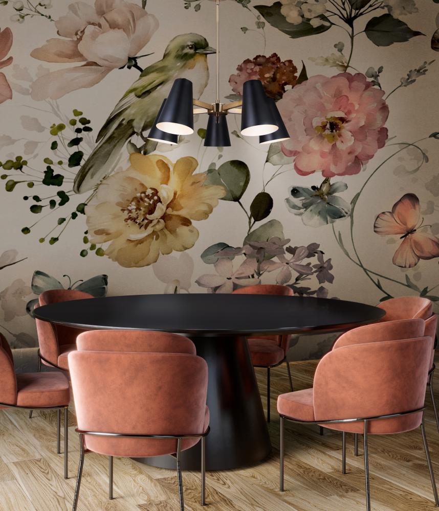 HARKEN 5 Light Matte Black and Gold Contemporary Chandelier for Dining Rooms and Living Rooms