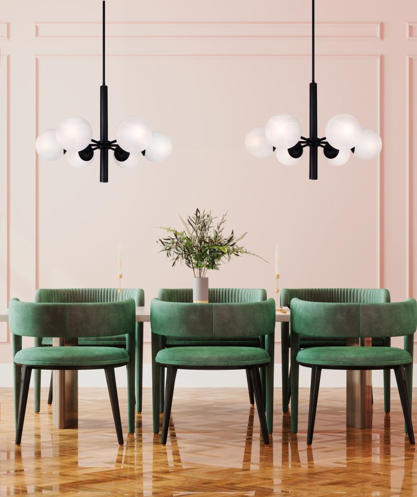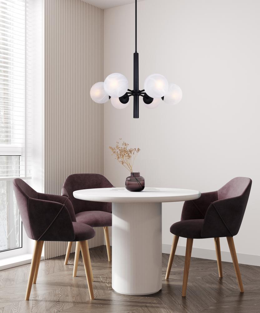 Mackenna, ICH1229A06BK, MBK Color, 6 Lt Rod Chandelier, Alabaster Glass, 60W Type A, 26inch W x 22 - 70inch H