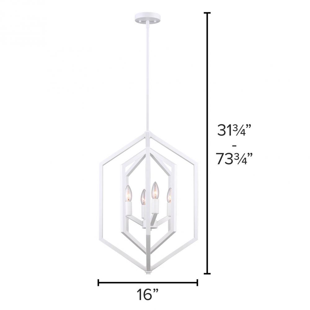 Add a touch of contemporary elegance to your home with the ICH1010A04WH16 NETTO 4-Light 16-inch Wide Rod Chandelier, featuring a sleek matte white color finish. With a width of 16 inches and an adjustable height range from 31.75 to 73.75 inches, this chandelier offers versatility in installation to suit your space. The four lights are compatible with 60W Type C bulbs, providing soft and diffused illumination. Whether used in a dining room, living room, or foyer, the NETTO Chandelier creates a captivating focal point with its modern design and warm glow