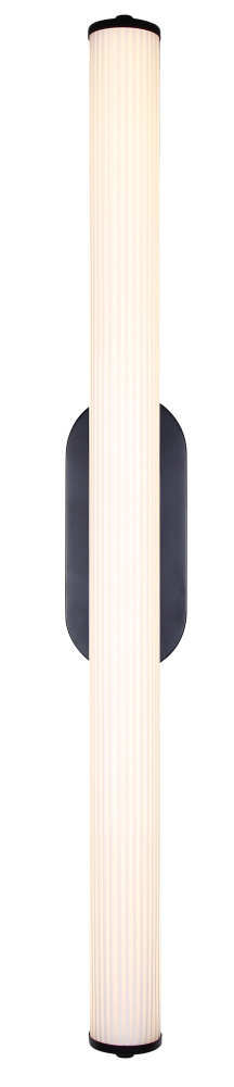 OZZY, LWL322A35BK, LED 35inch Height Wall Sconce, Glossy White Ribbed Glass, 30.5W LED (Integrated), Dimmable, 3000K 2500Lumens, 4000K 2530Lumens, 5000K 2530Lumens 3CCT Switch, 4.25inch W x 35inch H x 5inch D