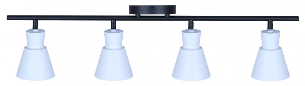 RADLEY 4 Light 29 in. Ceiling/Wall Matte Black Track Light Kit with Matte White Metal Shade