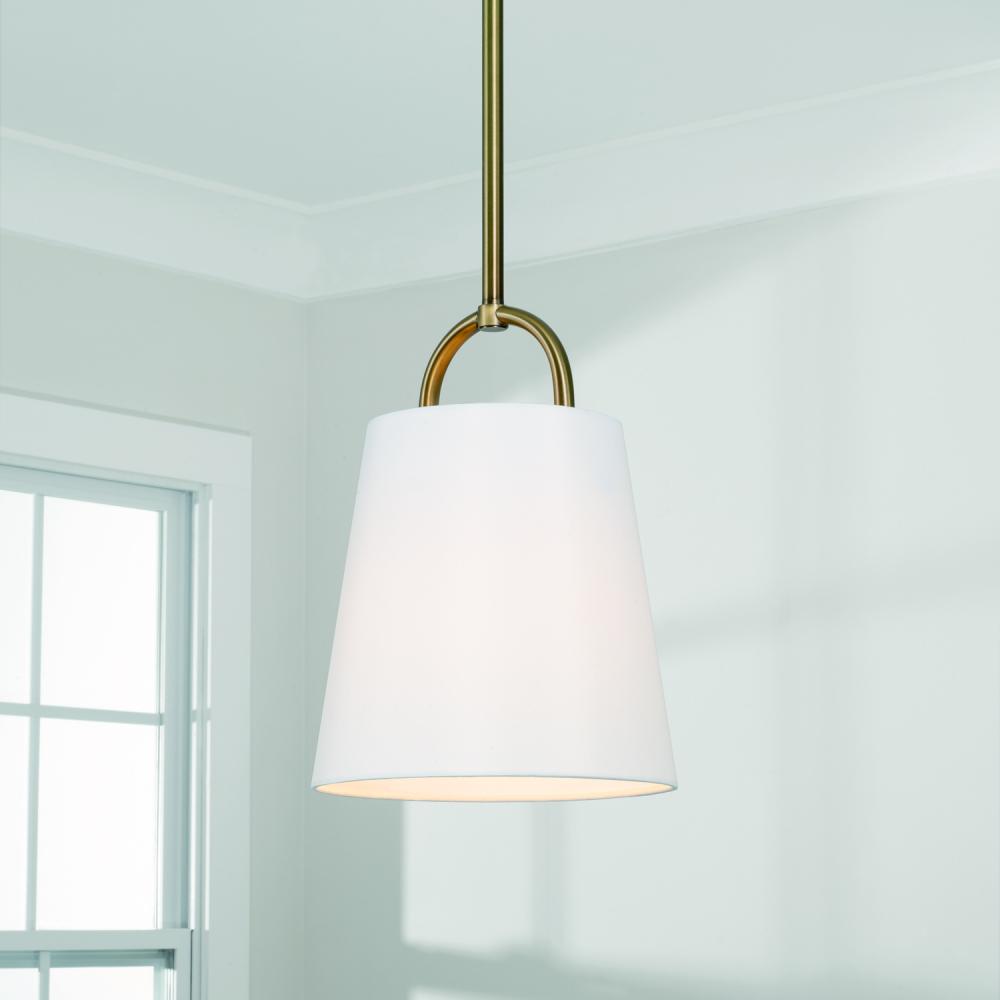 10"W x 13.75"H 1-Light Pendant in Aged Brass with White Fabric Shade