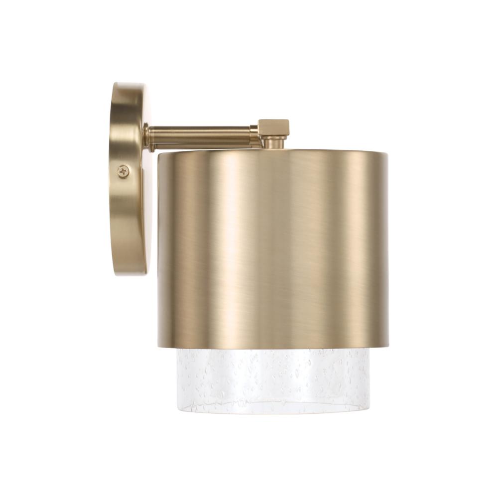 Contemporary forms meet illuminated elegance. The Weller 2-Light Vanity combines sleek, cylindrical silhouettes with seeded glass to cast a unique powder room glow. The Matte Brass finish brings a hint of warmth and subtle shine.