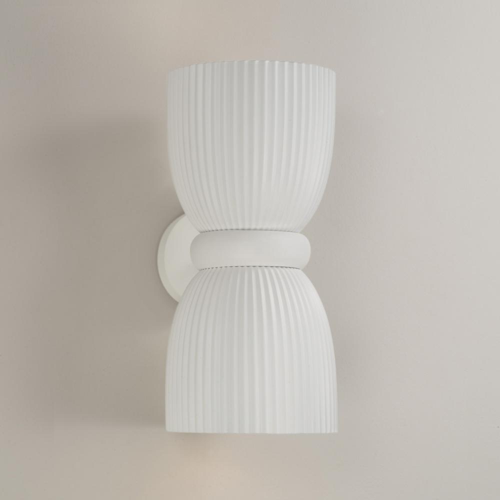 2-Light Handcrafted Fluted Ceramic Sconce in Matte White