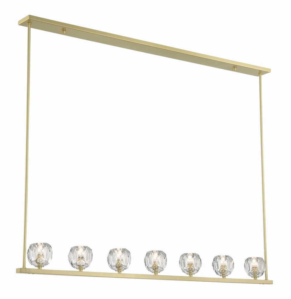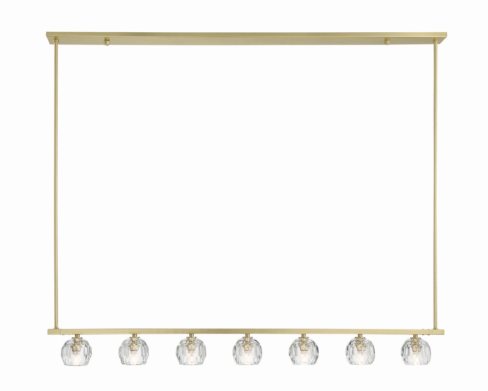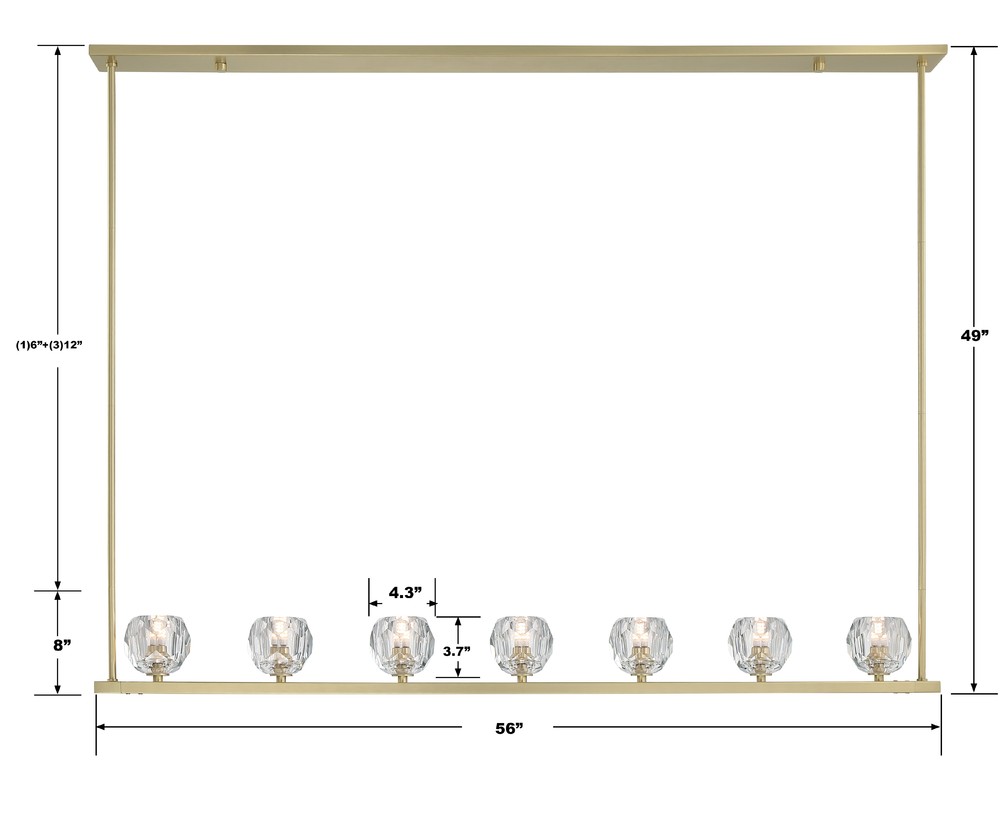 Finely crafted with great attention to detail, the Aragon Collection is a mix of industrial meets modern style. The Soft Brass minimalist look includes rods attached to a large frame, facet-cut crystal globes and packed-in G9 Dimmable LED Bulbs, (rated at 3000K, 400 lumens and CRI 80). This functionally timeless fixture can be hung with upward or downward-facing light giving you the flexibility to choose how you would like to set the mood of the room.