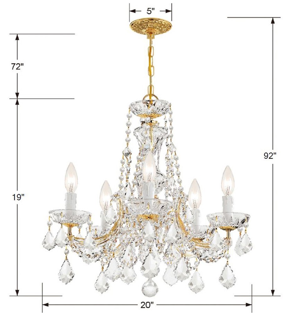 Draped in an abundance of crystal, the Maria Theresa collection is the epitome of high style. The fixture is stunning with glass arm frame decked with strands of faceted cut crystal. The fixture showcases opulence and decadence and is the perfect traditional accent to any space. Whether in a living room, or even closet or hallway, this fixture bring a luxurious addition to any decor.