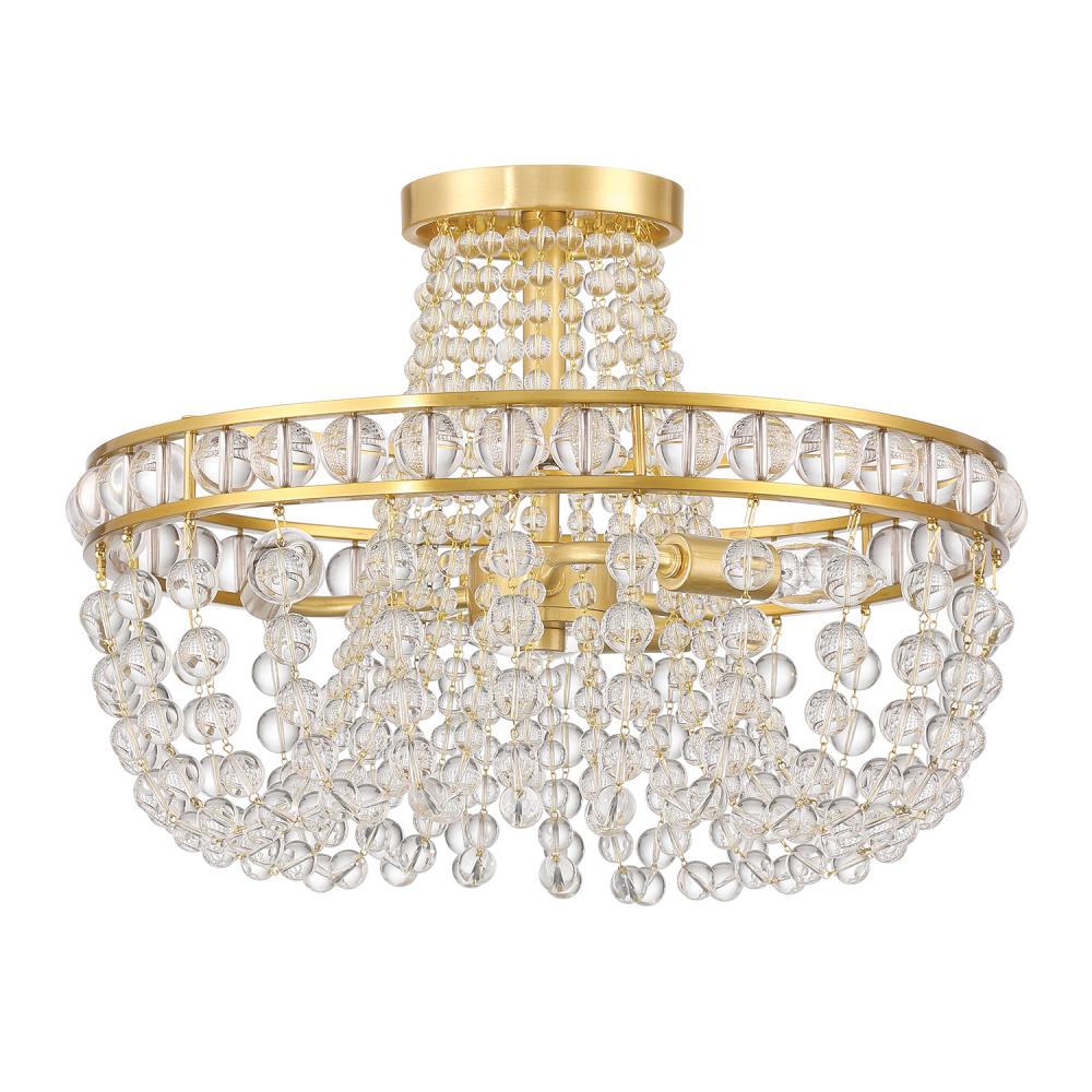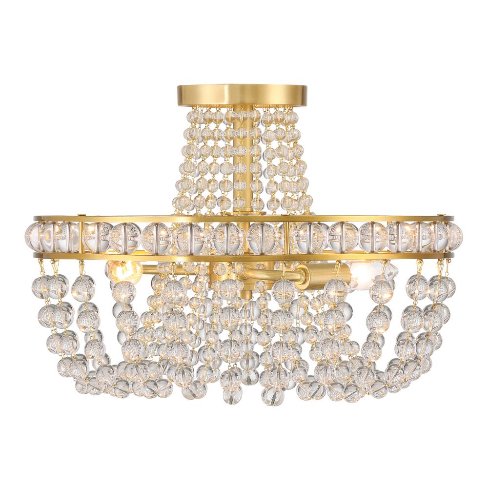 The Seville collection presents a modern take on a classic early American design. Glass balls gracefully cascade downwards, connecting to a circular gold metal framework that encases additional glass within the structure. This innovative design revamps the traditional candle-style appearance with a contemporary touch, resulting in a striking focal point that effortlessly combines classic charm with modern sophistication.
