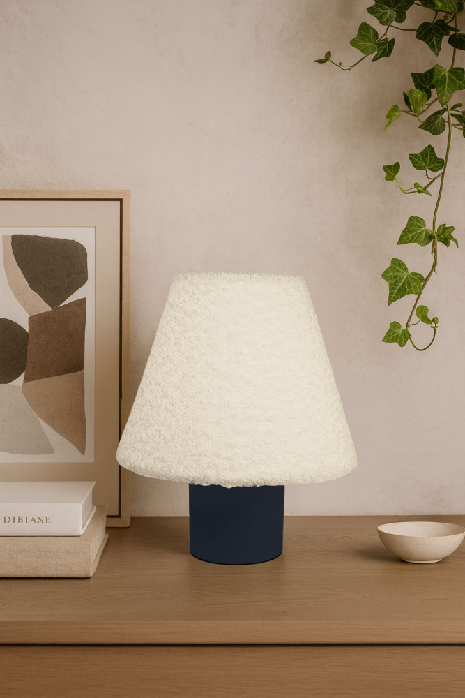 1 Light Incandescent Matte White Table Lamp with Boucle Fabric Shade
