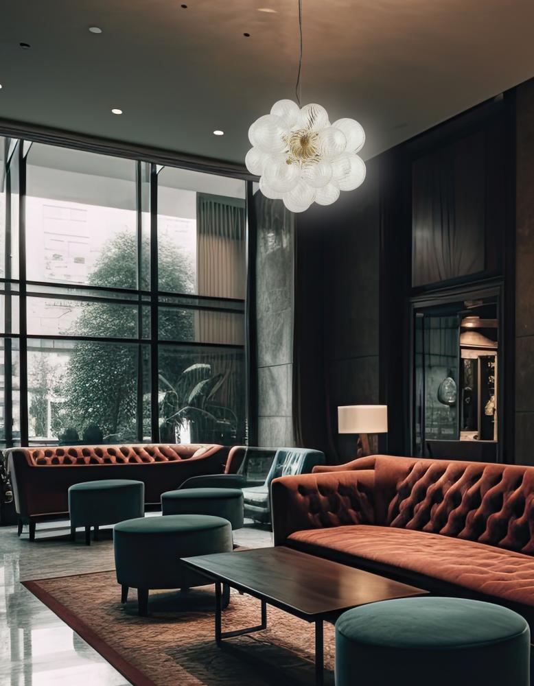 12LT Chandelier, AGB w/ CLR Spiral Glass