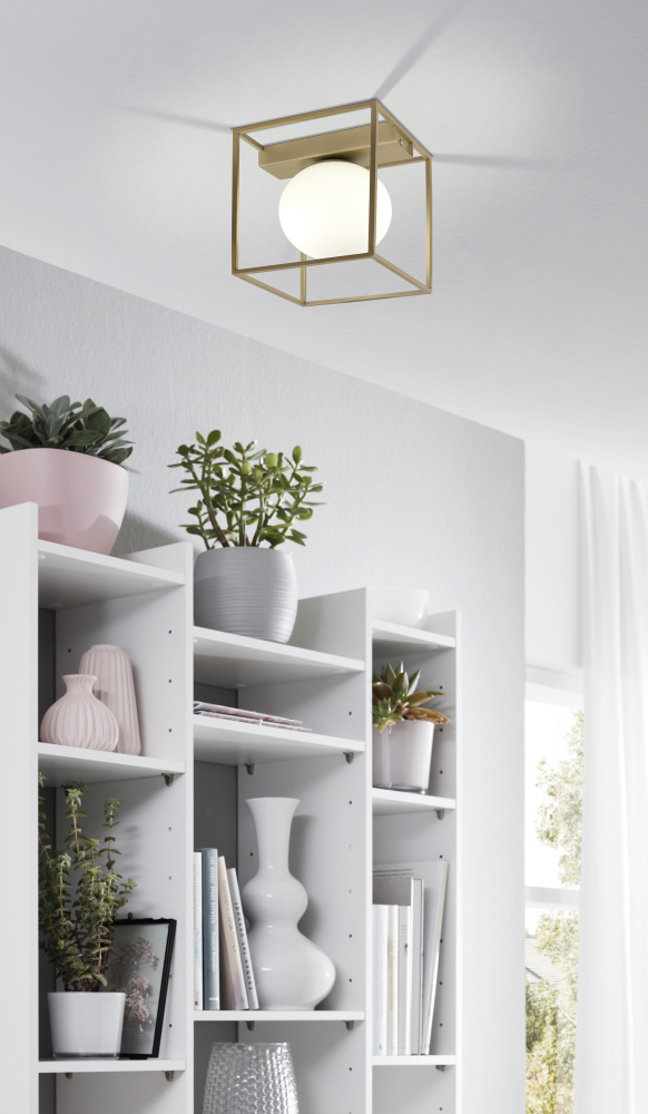1 LT Ceiling Light w/ Champagne Finish & White Glass Shade