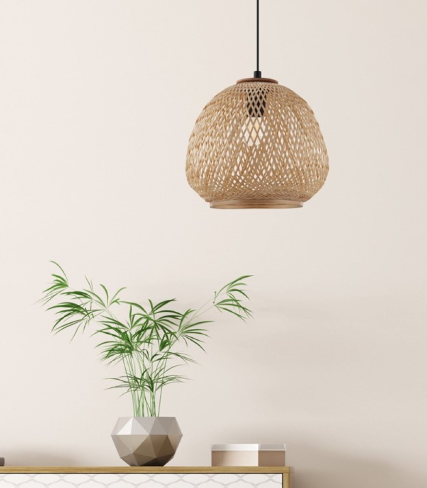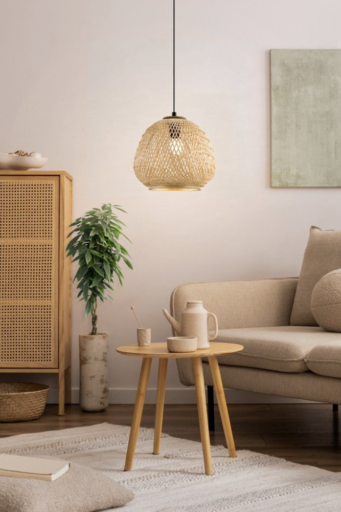 1 LT Pendant w/ Black Finish & Natural Bamboo Shade