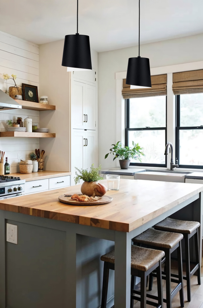 1 LT Mini Pendant w/ Black Finish & Black w/ White Interior Shade