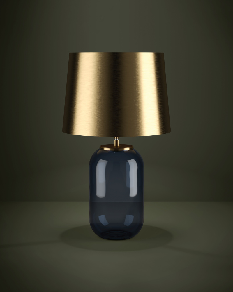 1 LT Table Lamp w/ Transparent Indigo Glass Base & Brushed Gold Metal Shade