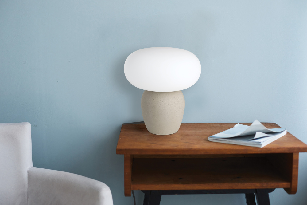 1 LT Table Lamp w/ a Light Brown Ceramic Base & White Opal Glass Shade