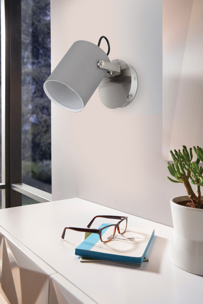 1 LT Wall Track Light w/ Matte Nickel Finish & Grey Fabric Shade