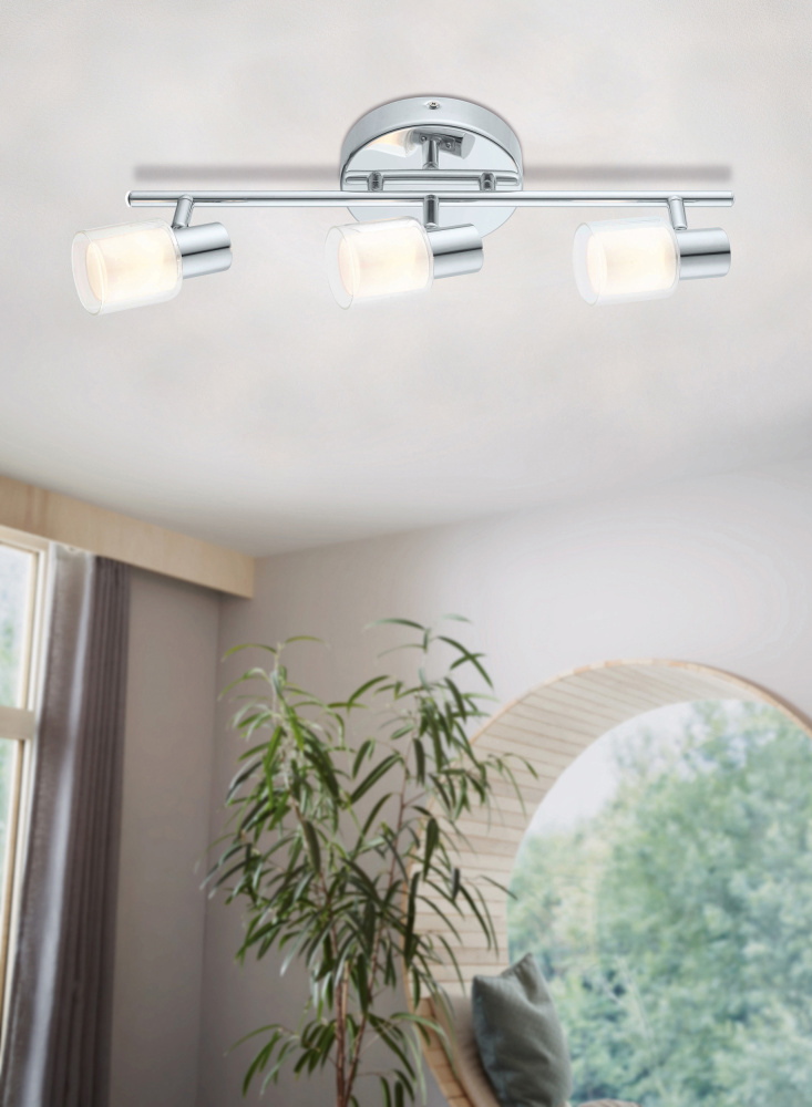 3 LT Integrated LED Track Light w/ Chrome Finish & Fosted Glass Surrounded by Clear Glass Lamp Heads