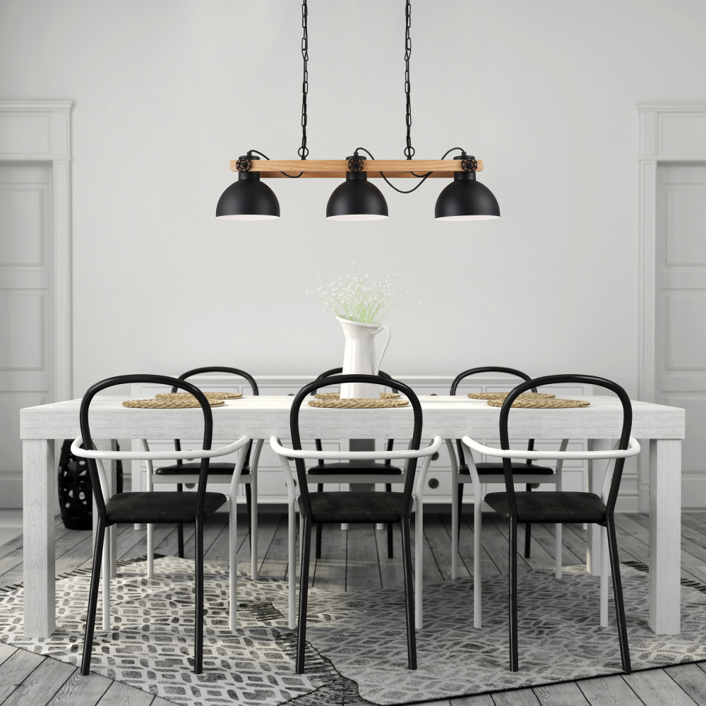 3 LT Linear Pendant w/ Black Finish & Black w White Interior Metal Shades w/ Wood Accent