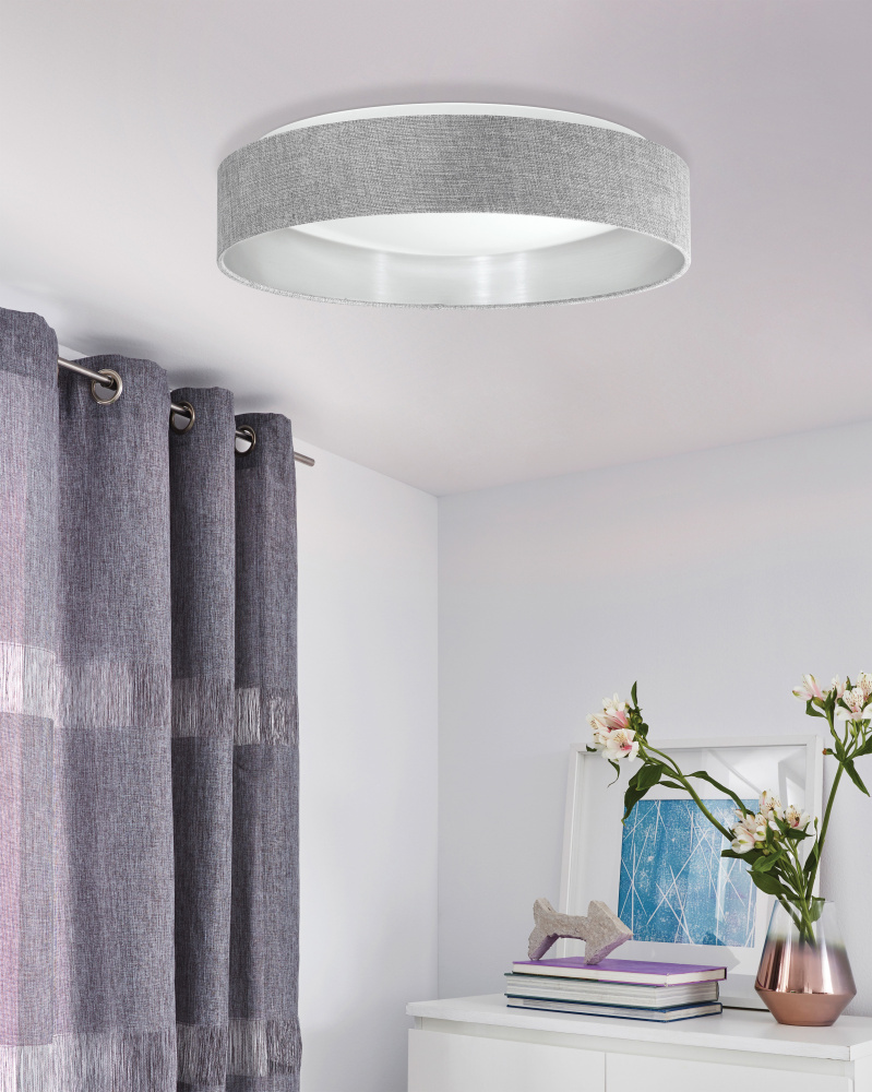 1 LT LED Ceiling Light w/ Grey w/ Silver Interior Fabric Shade w/ White Acrylic Diffuser
