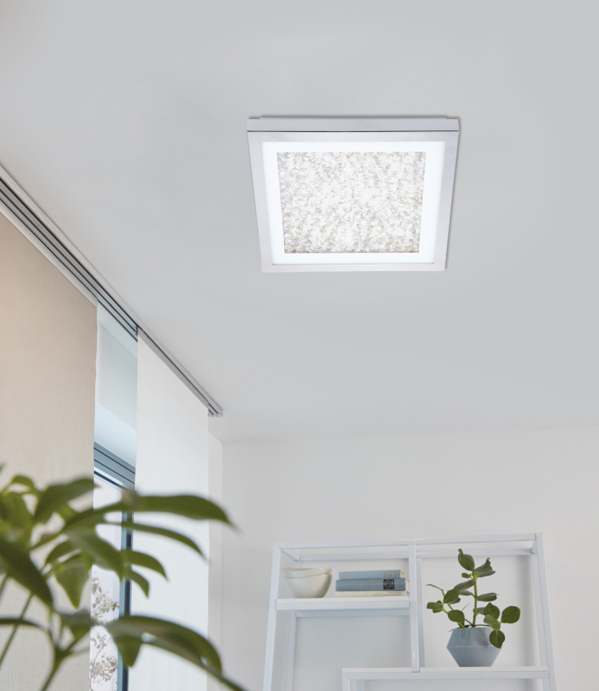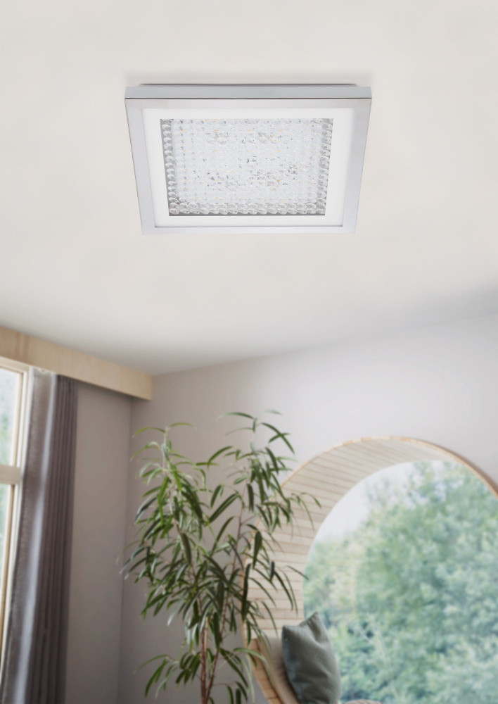 LED Ceiling Light w/ Chrome Finish & Iridescent Glass Shade w/ Clear Glass Stones