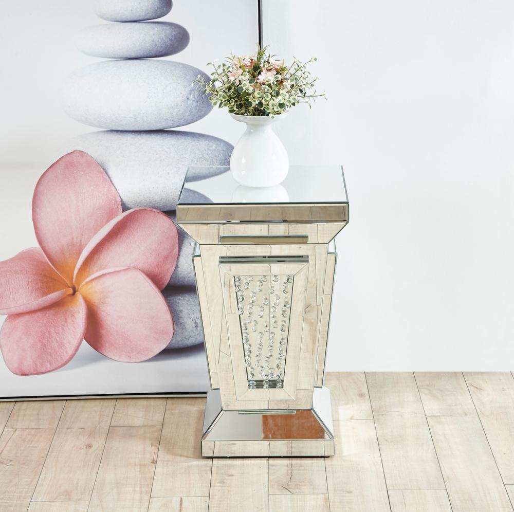 47.5 in. Crystal mirrored mantle with wood log insert fireplace