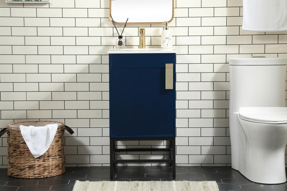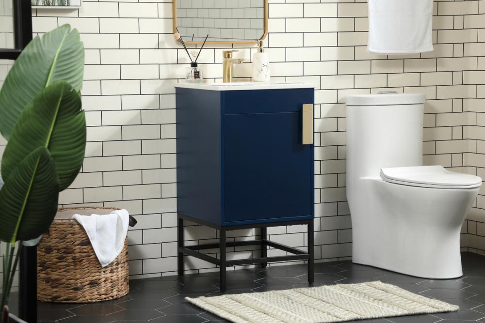 This vanity is a sleek-looking piece of bathroom furniture that is easy to incorporate into your design scheme. The cabinet features a smooth door panel with an oversized steel handle and soft close hinges provide ample room for accessories. Constructed of engineered wood, the powder-coated metal rod legs are an urban industrial look that we love. Minor assembly of the metal legs needed to get this vanity up and running.