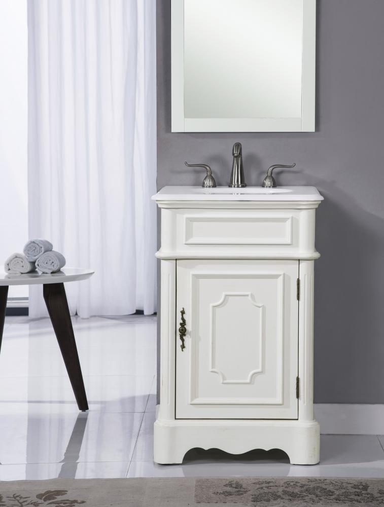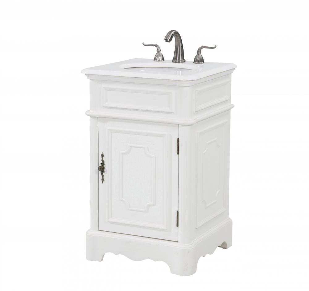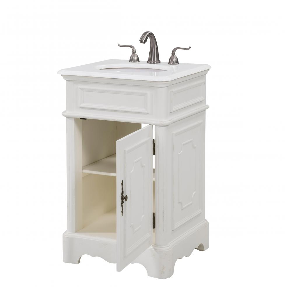 21 inch Single Bathroom vanity in Antique White with ivory white engineered marble