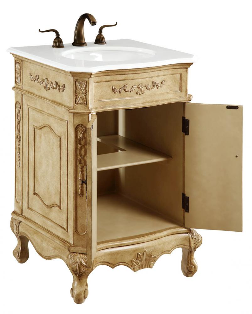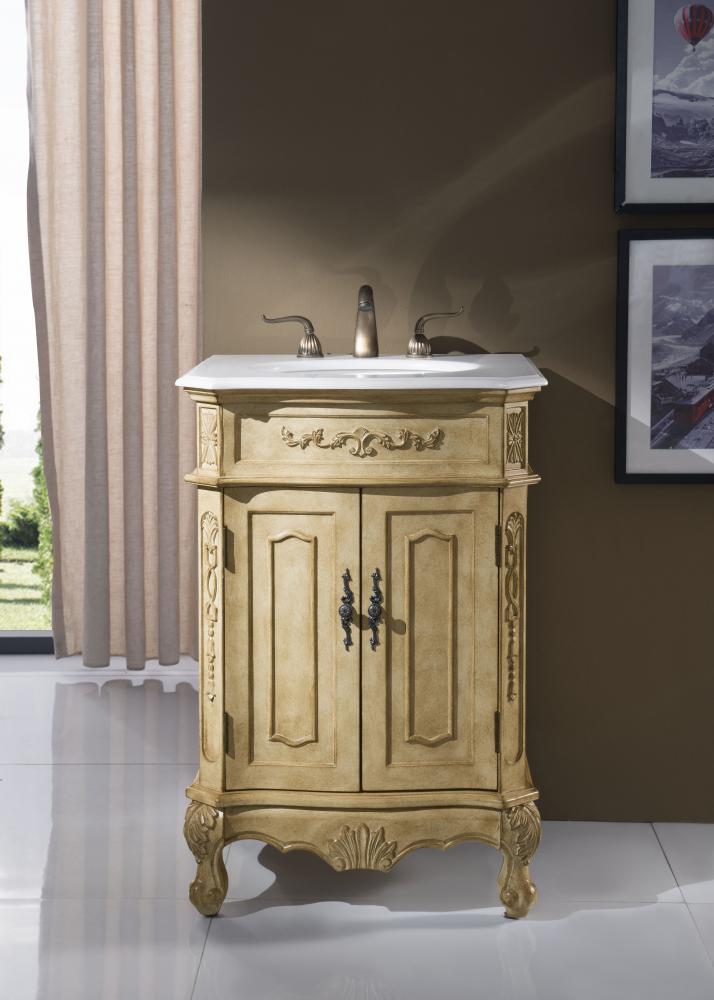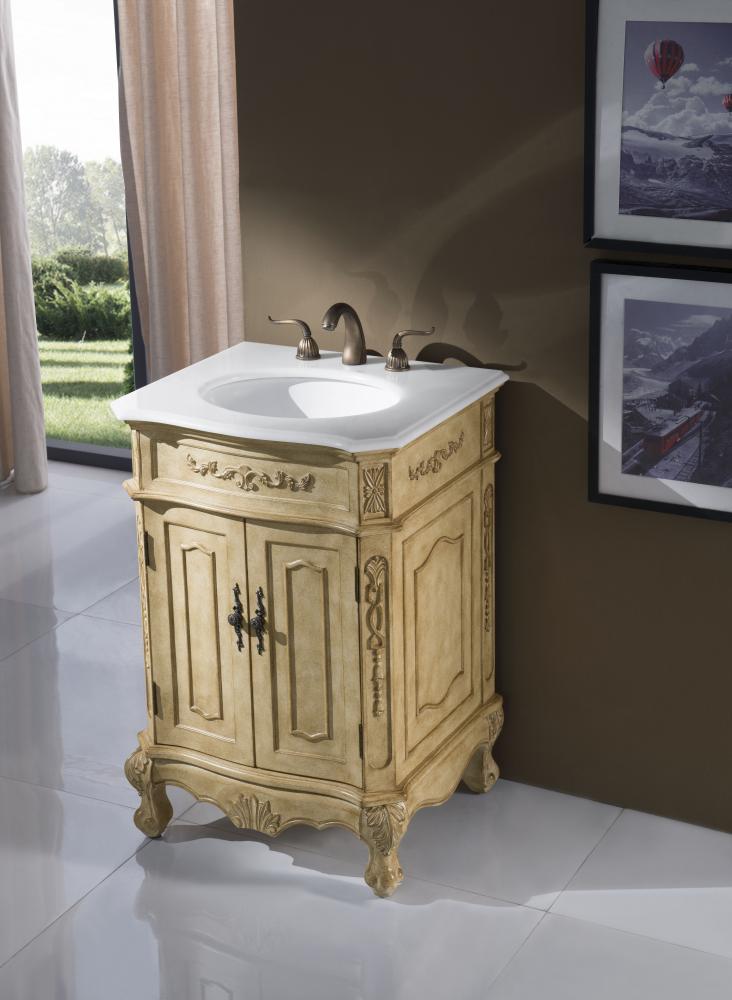 24 inch Single Bathroom vanity in Antique Beige with ivory white engineered marble