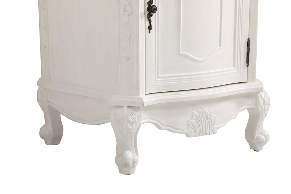 Create a refined and relaxing bath space with this traditional design vanity, presenting its ornate lines. This vanity, crafted of solid poplar wood and engineered wood panels, provides ample storage within its soft-close cabinet door, accentuated with metal hardware. Rounding out the design is an off-white marble with some brown veining in the stone. Comes with a white porcelain under-mount oval sink. Ships fully assembled.
