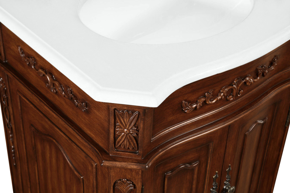 This superb balance of timeless tradition and opulent beauty in a engineered marble-topped vanity will certainly enhance the aesthetics of any home or office bathroom! Featuring an ivory white durable engineered marble countertop complimenting the hand painted cabinet with a delicate carved floral design, stands on stylishly carved solid wood French scroll feet. Don't let the design fool you, the engineered marble countertop and porcelain undermount sink allows for space to get ready, while the antique bronze hardware allows you to discover storage spaces with ease. You and your guests will marvel at this vanity that will both store away your bathroom essentials and enhance the aesthetics of your room.