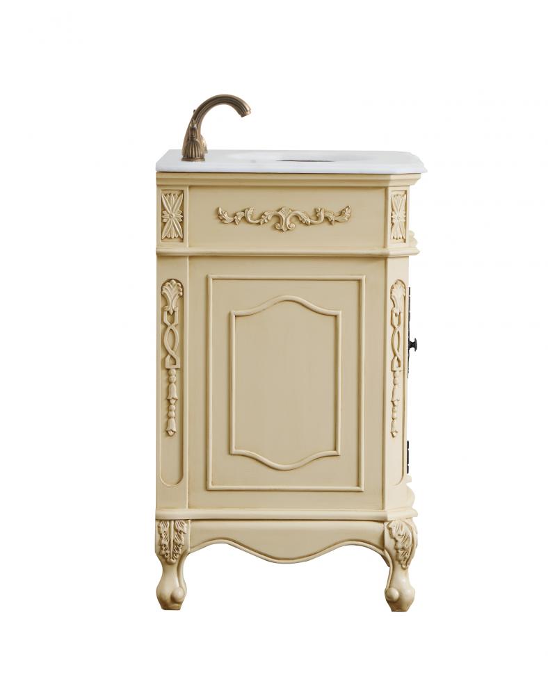 24 inch Single Bathroom vanity in light antique beige with ivory white engineered marble