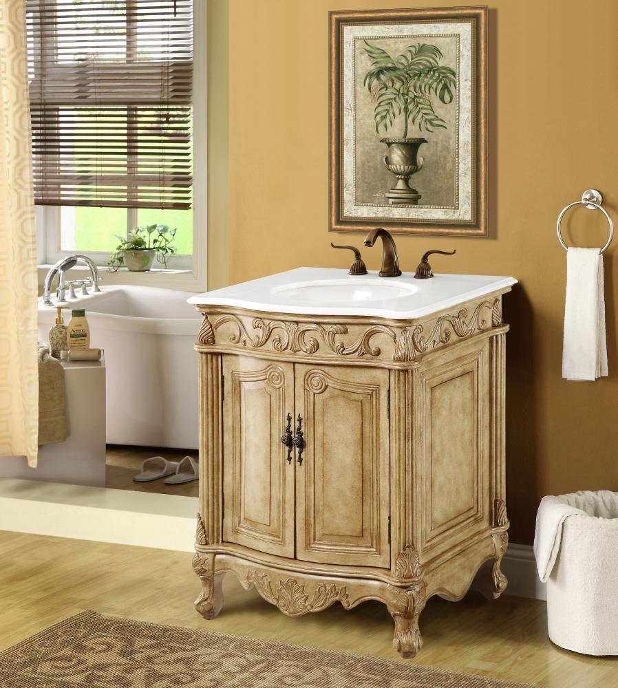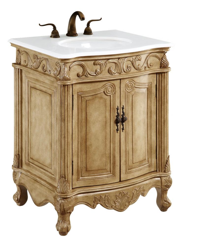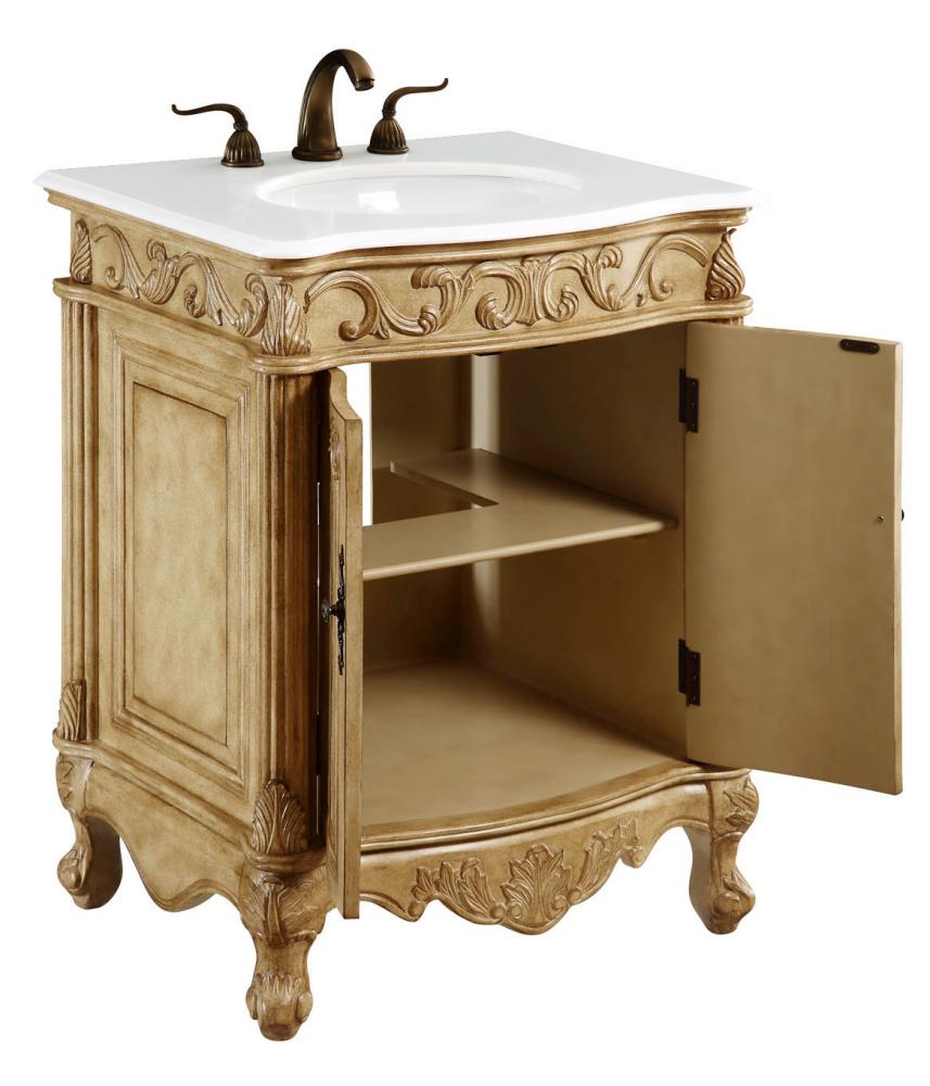 27 inch Single Bathroom vanity in Antique Beige with ivory white engineered marble
