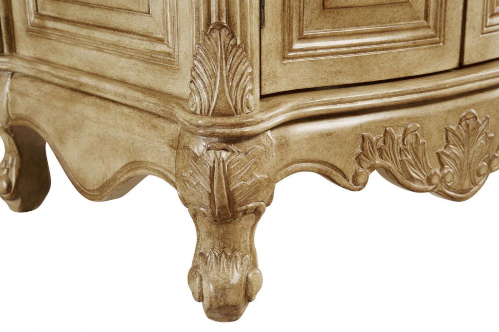 This superb balance of timeless tradition and opulent beauty in a engineered marble-topped vanity will certainly enhance the aesthetics of any home or office bathroom! Featuring an ivory white durable engineered marble countertop complimenting the hand painted cabinet with a delicate carved floral design, stands on stylishly carved solid wood French scroll feet. Don't let the design fool you, the engineered marble countertop and porcelain undermount sink allows for space to get ready, while the antique bronze hardware allows you to discover storage spaces with ease. You and your guests will marvel at this vanity that will both store away your bathroom essentials and enhance the aesthetics of your room.