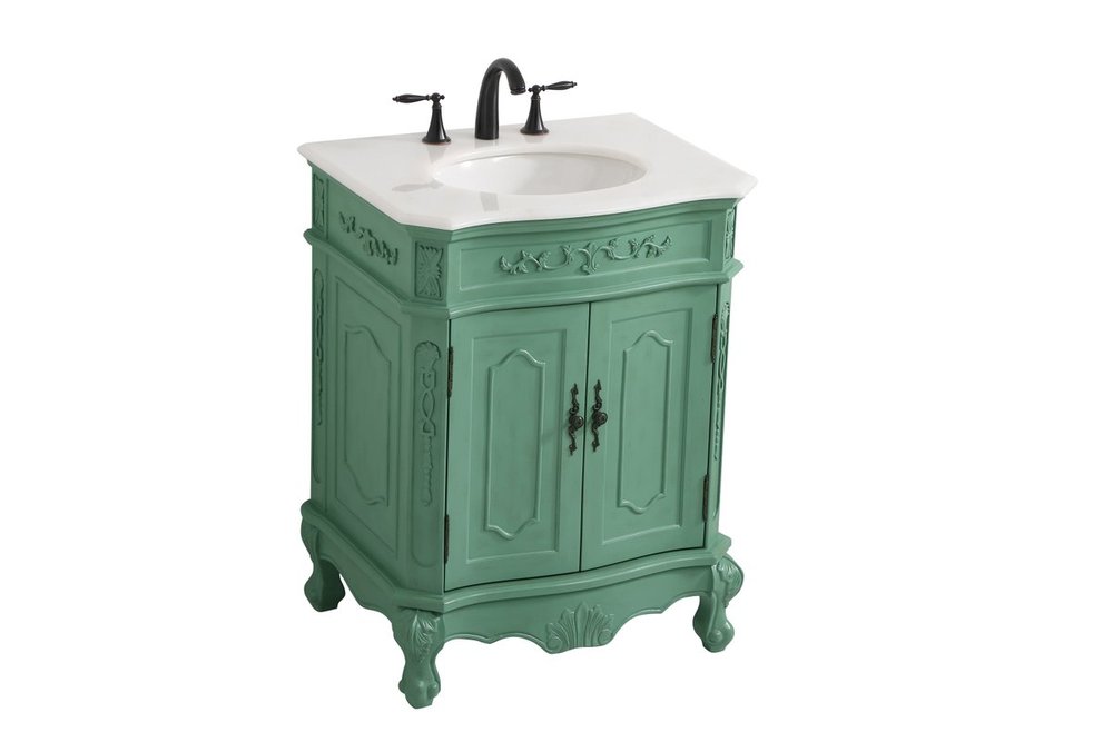 Elegant VF10127VM-VW - 27 inch Single Bathroom vanity in vintage mint with ivory white engineered marble
