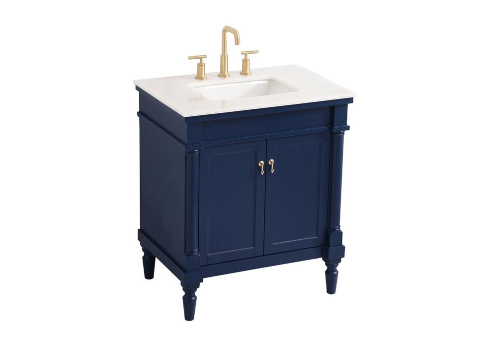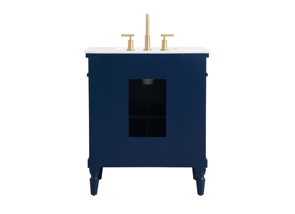 Elegant VF13030AW-VW - 30 inch Single Bathroom vanity in Antique White with ivory white engineered marble
