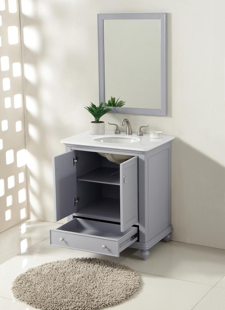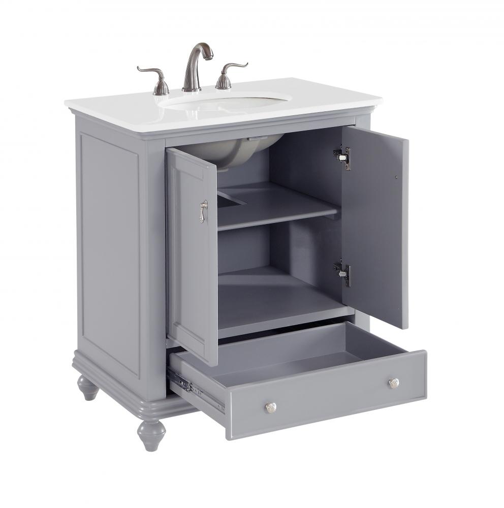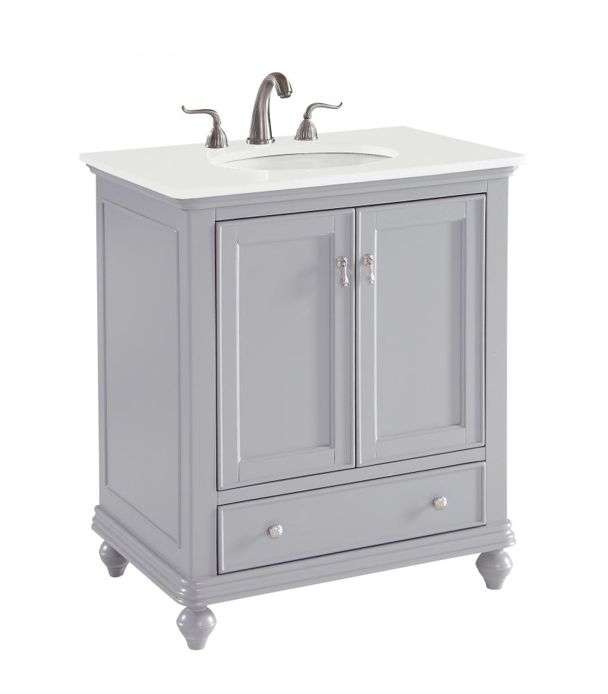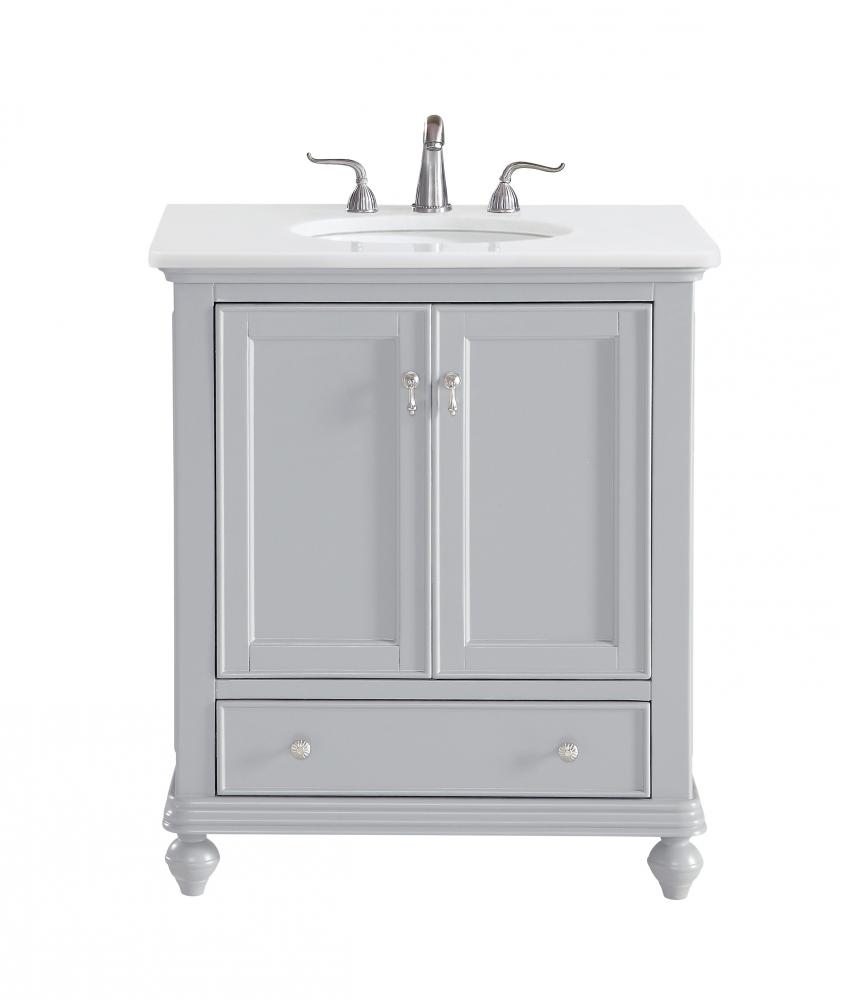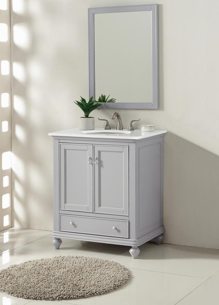 30 inch Single Bathroom vanity in Light Grey with ivory white engineered marble