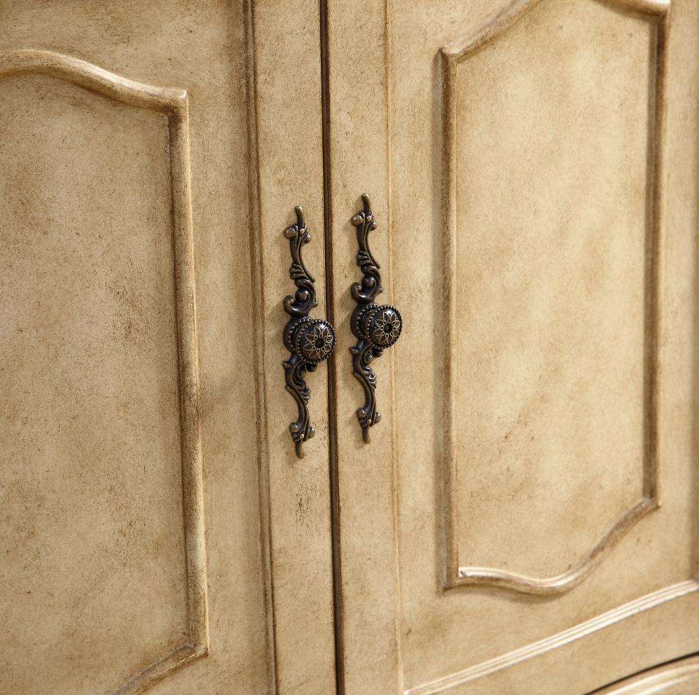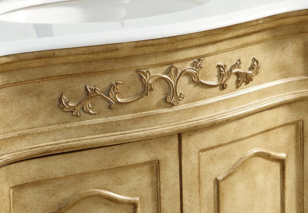 This superb balance of timeless tradition and opulent beauty in a engineered marble-topped vanity will certainly enhance the aesthetics of any home or office bathroom! Featuring an ivory white durable engineered marble countertop complimenting the hand painted cabinet with a delicate carved floral design, stands on stylishly carved solid wood French scroll feet. Don't let the design fool you, the engineered marble countertop and porcelain undermount sink allows for space to get ready, while the antique bronze hardware allows you to discover storage spaces with ease. You and your guests will marvel at this vanity that will both store away your bathroom essentials and enhance the aesthetics of your room.