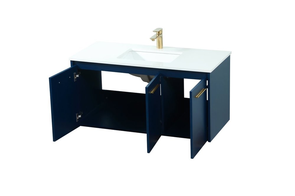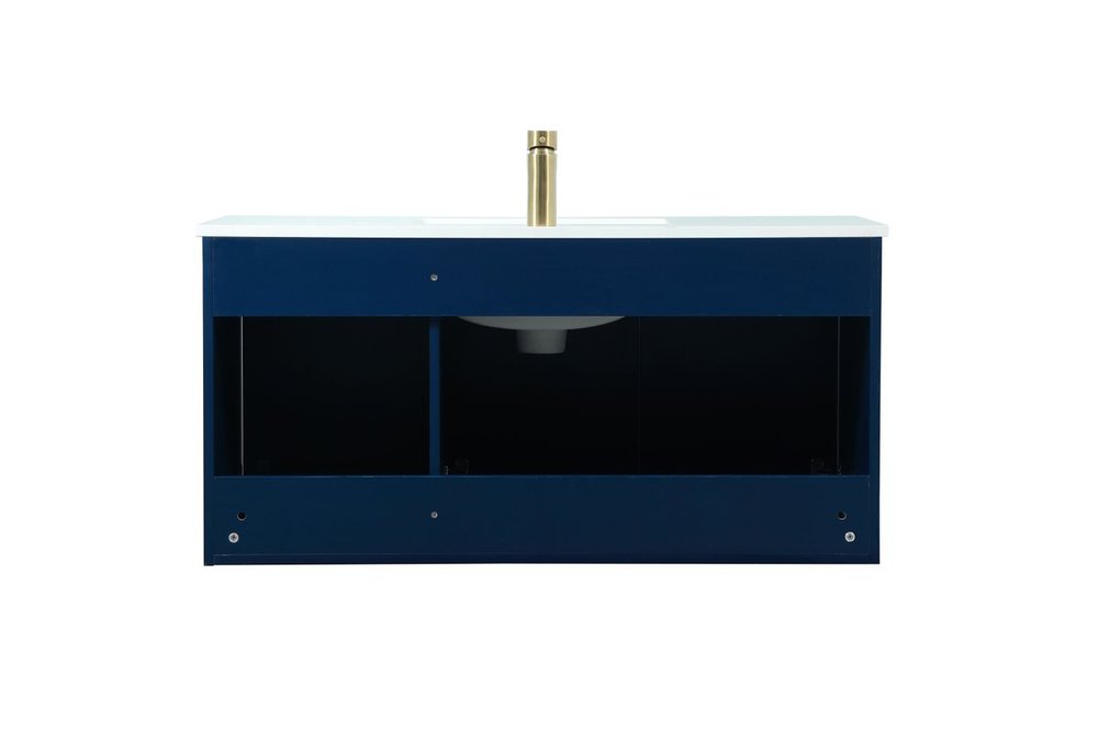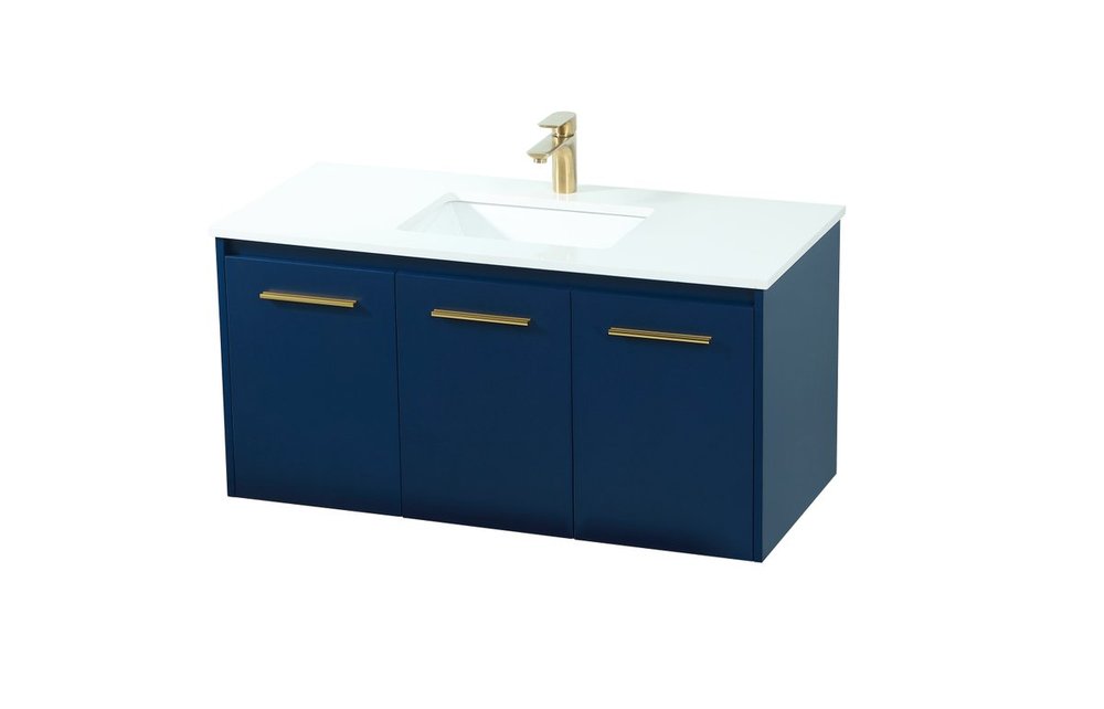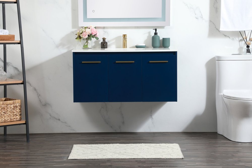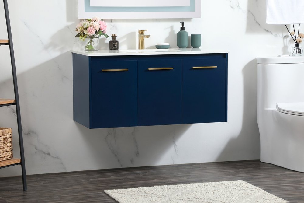 Save space and make your bathroom appear bigger with this floating vanity that comes in several finishes. Its minimal design will have you in awe, while its clean lines will leave your room feeling fresh and uncluttered. The Single cabinet opens with soft closing doors that allows for storage to place extra towels or various other essentials. Its low maintenance and durable engineered marble top will surely last through many washes.